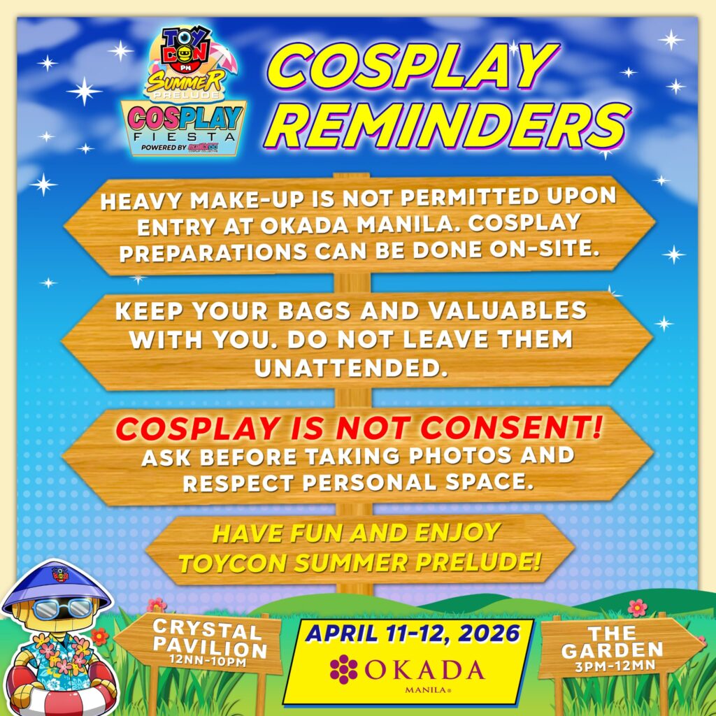 Cosplayers heading to TOYCON Summer Prelude, here are a few quick reminders before you slay the day at Okada Manila ![]()
